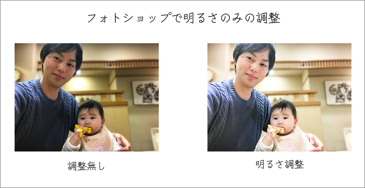 ちなみにフォトショップで明るさを調整するだけでこんなに変わります!